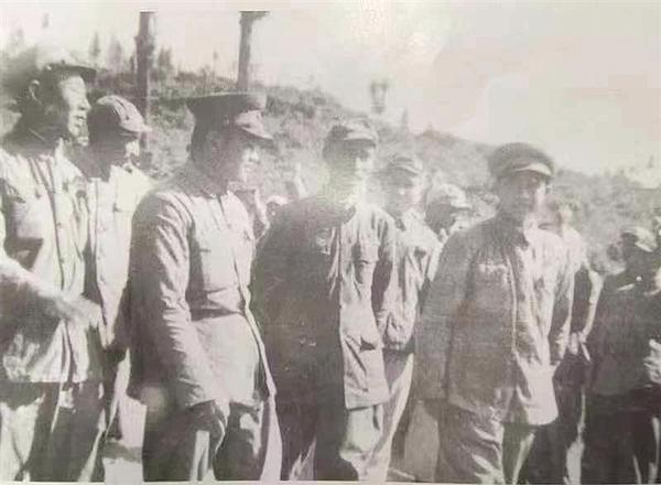 戰(zhàn)斗英雄丁永泰(前排左四)、朱興振(前排左二)和模范連隊(duì)代表許浦(前排左一)光榮地出席了1950年在北京召開的第一屆全國(guó)戰(zhàn)斗英雄代表會(huì)議。返回西藏到達(dá)五十三師師部時(shí),受到師長(zhǎng)金紹山(前排左三)的熱烈歡迎。