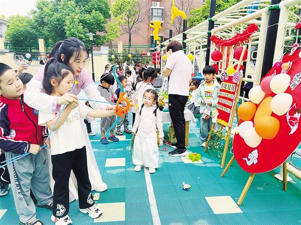 中秋節(jié)前夕,市城鄉(xiāng)一體化示范區(qū)各幼兒園積極組織開展形式多樣、內容豐富的慶?;顒樱寣W生沉浸式感受中華優(yōu)秀傳統(tǒng)文化的獨特魅力。圖一為老師帶領小朋友體驗“后羿射日”游戲。