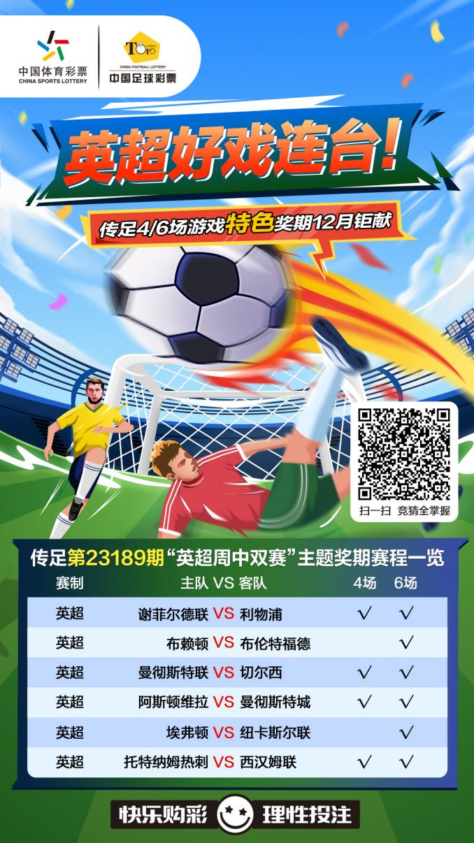 本周中歐洲主流足球賽事偃旗息鼓,唯有第15輪英超聯(lián)賽馬不停蹄地開快車,一周雙賽將考驗(yàn)各隊(duì)連續(xù)征戰(zhàn)的能力,板凳深度和輪換幅度將極大地影響英超未來的形勢(shì)和發(fā)展。傳足4/6場(chǎng)游戲第23189期競(jìng)猜對(duì)象全部是英超周中雙賽,分別是謝菲爾德聯(lián)VS利物浦、布賴頓VS布倫特福德、曼聯(lián)VS切爾西、阿斯頓維拉VS曼城、埃弗頓VS紐卡斯?fàn)柭?lián)以及熱刺VS西漢姆聯(lián)。