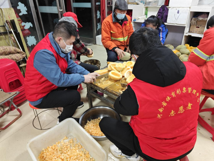 第二日早晨5點,周口體彩4名志愿者來到“東方愛心粥屋”開展志愿服務,洗菜、切菜、炒菜、熬粥……大家有條不紊地準備著早飯?!拔覀儝叩仄鸬煤茉纾瑏淼竭@吃碗熱粥,更有干勁了?!薄爸驹刚哒尜N心,熱粥熱菜的,感覺很幸福?!闭诔栽顼埖沫h(huán)衛(wèi)工人你一言我一語、贊聲一片。