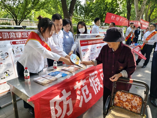 活動(dòng)當(dāng)天,該行組織員工前往五一廣場(chǎng)開展集中宣傳,通過設(shè)置宣傳咨詢臺(tái),懸掛橫幅,向群眾發(fā)放反假幣、愛護(hù)人民幣和打擊假幣犯罪宣傳折頁(yè),普及數(shù)字人民幣知識(shí),宣傳人民幣防偽知識(shí)和識(shí)別假幣騙局,傳遞“防范假幣,保護(hù)自我”理念。針對(duì)老年客戶風(fēng)險(xiǎn)意識(shí)和識(shí)假能力不足問題,該行開展“一對(duì)一,手把手”現(xiàn)場(chǎng)教授假幣“看、摸、聽、測(cè)”等識(shí)別方法,切實(shí)守牢老年客戶的“錢袋子”。