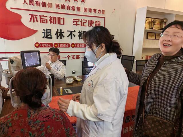 活動現(xiàn)場設置視力檢測區(qū)、眼底篩查區(qū)等功能區(qū)域,醫(yī)護人員為老同志進行全面眼部健康檢查和評估,重點篩查白內障、青光眼等老年高發(fā)眼病,并現(xiàn)場為老同志講解有關眼健康防護知識。針對檢測中發(fā)現(xiàn)的疑似白內障患者及其他眼疾者,醫(yī)護團隊現(xiàn)場建立健康檔案并預約復診通道,使受檢者有所醫(yī)、有所治,彰顯人文關懷。