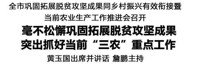 王欽勝通報全市鞏固拓展脫貧攻堅成果工作開展情況??钻杺鬟_全省鞏固拓展脫貧攻堅成果同鄉(xiāng)村振興有效銜接暨當前農(nóng)業(yè)生產(chǎn)工作推進會精神。鄲城縣、淮陽區(qū)、沈丘縣發(fā)言。