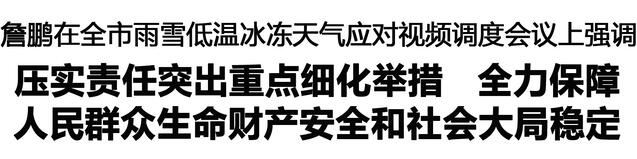 會議要求,要突出重點,精準施策、協(xié)同聯(lián)動,有力有效防范應對雨雪低溫冰凍天氣影響。要抓好農(nóng)業(yè)防凍減災,強化田間管理,守護小麥安全越冬,做好設施農(nóng)業(yè)指導,防止棚體垮塌和凍害發(fā)生。要根據(jù)天氣變化及時啟動應急預案,必要時采取停課、延遲上學等措施,確保通知到位、后續(xù)跟蹤管理到位。要做好困難群眾生活救助和民生兜底工作,嚴格落實領導干部進養(yǎng)老院值守制度,全面排查用火用電用氣安全隱患,加強防寒保暖措施,保障服務對象的生命安全和身體健康。要強化道路疏堵保暢和出行引導,緊盯重點路段,提前預置人員、機械力量,以雪為令、邊下邊清、人機分工、雪停路清,讓群眾出行更暖心、更順心。要統(tǒng)籌做好供電、供氣、供水、供暖等工作,強化生活必需品供應,全力保障民生。