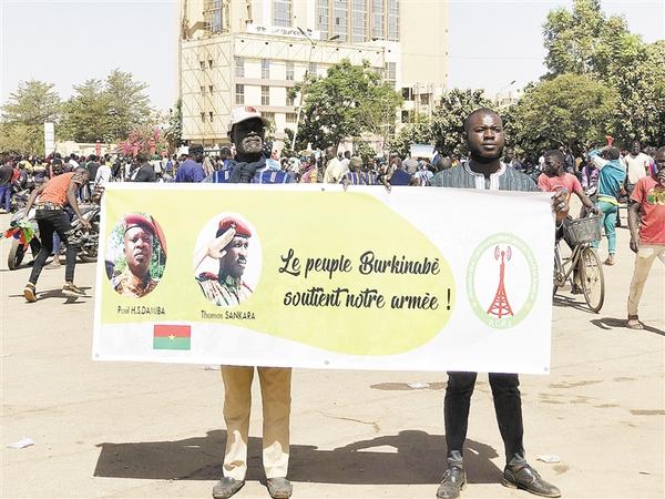 1月25日,示威者聚集在布基納法索首都瓦加杜古的民族廣場支持政變軍人(手機(jī)拍攝)。布基納法索政變軍人24日在國家電視臺(tái)發(fā)表講話說,軍方已奪取政權(quán),并解除總統(tǒng)卡博雷的職務(wù)?!?a href="http://m.chebaowu.com/szb/pc/col/202201/27/content_158702.html" target="_blank" >[詳細(xì)]