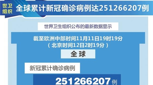 世衛(wèi)組織全球累計新冠確診病例達251266207例 ……[詳細]