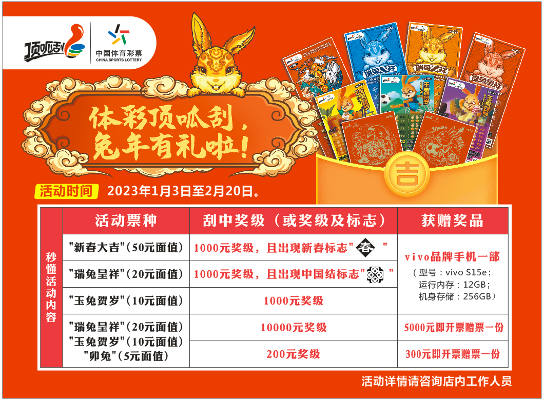 體彩頂呱刮兔年生肖票促銷活動火爆進(jìn)行中