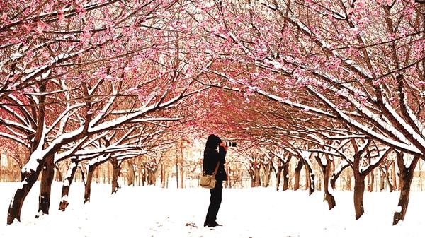 3月3日,受弱冷空氣影響,一場春雪不期而至,雪花紛紛揚揚飄落,給古城淮陽披上銀裝,不少市民走進城區(qū)公園踏雪賞梅。