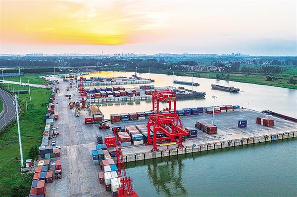 作為國(guó)家重點(diǎn)建設(shè)的36個(gè)內(nèi)河港口之一,目前,周口中心港已建成投用47個(gè)千噸級(jí)泊位,年吞吐能力達(dá)3000萬噸,開通18條國(guó)內(nèi)集裝箱航線及14條國(guó)際集裝箱航運(yùn)通道,實(shí)現(xiàn)了“箱通世界、貨運(yùn)全球”。圖為記者近日拍攝的周口中心港碼頭集裝箱裝船作業(yè)現(xiàn)場(chǎng)。