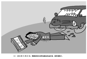 ?、?nbsp;2012年11月21日,韓國(guó)法輪大法學(xué)會(huì)副會(huì)長(zhǎng)金正浩因車禍死亡。