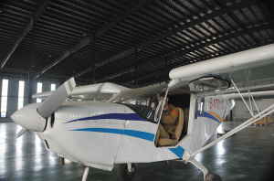 周口通用機(jī)場飛機(jī)裝備師正在調(diào)試剛剛生產(chǎn)出來的飛機(jī)