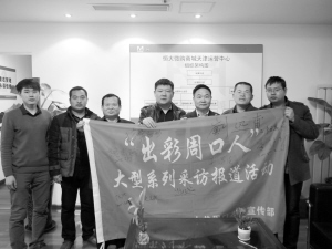 于杰(右三)在“出彩周口人”旗上簽名