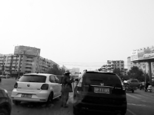 圖① 市區(qū)多個(gè)路口都存在攔車行乞現(xiàn)象,既不文明又不安全。