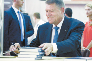 5月23日,羅馬尼亞總統(tǒng)約翰尼斯在首都布加勒斯特舉行的新書發(fā)行儀式上為讀者簽名。當(dāng)天,羅馬尼亞總統(tǒng)約翰尼斯的新著《第一步》在第10屆國際書展舉行發(fā)行儀式。