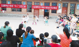 左圖 兒童節(jié)前夕,項城市積極組織小學(xué)、幼兒園開展慶“六一”活動,讓小朋友享受更多的歡樂和溫暖。圖為三店鎮(zhèn)李莊小學(xué)的孩子正在表演節(jié)目。(張永久 攝)