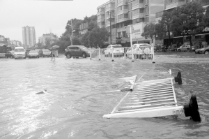 廣西、江西等地遭遇持續(xù)強(qiáng)降雨 中央氣象臺(tái)繼續(xù)發(fā)布暴雨藍(lán)色預(yù)警 6月14日,在江西宜春明月北路,路面交通護(hù)欄被洪水沖倒。6月13日起,廣西、江西等地遭遇大范圍強(qiáng)降雨。中央氣象臺(tái)14日10時(shí)繼續(xù)發(fā)布暴雨藍(lán)色預(yù)警,預(yù)計(jì)14日14時(shí)至15日14時(shí),湖南東北部和中部、湖北東南部、安徽南部、江西北部、福建西北部、浙江大部、上海以及西藏東南部、云南西部和東南部、廣西北部、廣東中北部、海南南部等地的部分地區(qū)有大雨或暴雨。新華社發(fā)