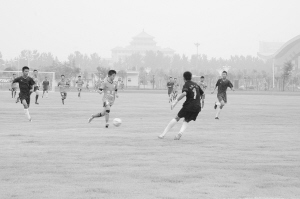 與此同時(shí),體育館東側(cè)足球場(chǎng)上則上演著新疆競(jìng)技隊(duì)和撫順新野隊(duì)的精彩對(duì)決。身材高大的新疆競(jìng)技隊(duì)隊(duì)員的表現(xiàn)搶眼,讓周口球迷大開(kāi)眼界。