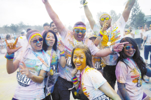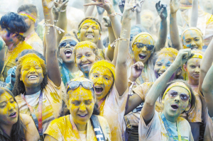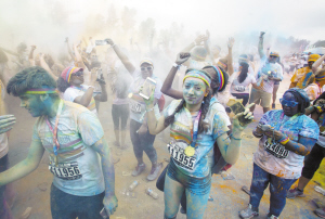 當?shù)貢r間6月13日,在美國洛杉磯,約萬名跑步愛好者在洛杉磯道奇球場外參加“彩色跑”活動?!安噬堋笔且豁棅蕵放懿巾椖浚虨?公里,每公里設置一個彩色站,當參與者跑至彩色站時,由志愿者向參與者拋灑彩色粉末。與傳統(tǒng)跑步競速相比,“彩色跑”活動雖然沒有贏家或獎品,但強調“參與、娛樂和色彩”的重要性。